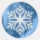Blue and White Snowflake Christmas Winter Holidays Classic Round Sticker