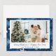 Send warm winter wishes with this elegant flat holiday photo card, featuring a rich blue background adorned with delicate white snowflakes and soft bokeh accents. Designed as a one-sided flat card, this piece offers a clean, modern format that showcases your favorite family photo in a beautifully framed layout. Underneath the image, a customizable holiday message and family name add a personal and heartfelt touch.
