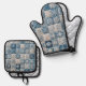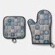 Blue and White Snowflake Quilt Oven Mitt & Pot Holder Set