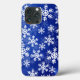 A stylish blue and white snowflake pattern is featured on this holiday themed custom iPhone case. Perfect for Christmas!