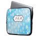 This festive blue and white snowflakes laptop sleeve has a text box for you to customise with your own name, initials, business name, or other text. If you need any help customising, please email niteowlstudio@gmail.com.