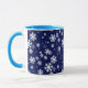 Blue and White Snowflakes On Dark Blue Ground Mug