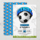 Blue and White Soccer Ball Birthday Party Invitation