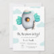 Blue and White Spaceship with Bird Baby Shower Invitation