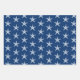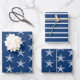 Elegant Nautical Stripe and White Starfish Wrapping Paper Sheets with a navy blue background. The classic coastal design is a unique way to celebrate a holiday on the coast, or as part of a coordinated gift wrapping set for a beach wedding bridal party or shower or birthday.