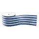 This grosgrain ribbon has dark blue and white stripes. Beautiful for tying up gifts or attaching gift tags to your packages.