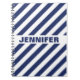 Cool blue and white diagonal striped design. Click personalize and replace the name with your own.