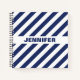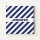 Cool blue and white diagonal striped design. Click personalise and replace the name with your own.