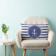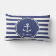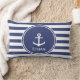 Blue and White Striped with Anchor and Custom Name Lumbar Cushion
