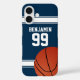 Would you like this design in a different colour combination? Please contact us through our GiftsBonanza store and we will be happy to assist with your custom request. Perfect for the basketball fan or basketball player whose team colours are dark blue and white, with a sports basketball jersey style design in dark blue with white stripes and customisable text for their name and number. A basketball is also featured as part of the design.