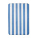 Custom bath mat with a preppy stripe pattern in blue and white colours. Use the design tools to choose any background colour, add your own text or upload photos to create a one of a kind design to match any bathroom decor.