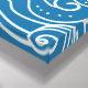 An intricate swirl and wave are mixed in varying shades of blues. Large and small blue circles are surrounded by larger swirls.