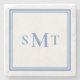 Create your own blue and white three letter monogram stone coasters. Simple to personalise with custom initials in elegant minimalist typography.