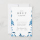 Elegant blue and white hand-drawn watercolor floral design inspired by classic chinoiserie style. modern, chic and sophisticated, great wedding RSVP cards for garden wedding, vintage wedding, Asian inspired chinoiserie wedding.