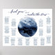 Elegant Celestial theme seating chart for 15 tables or less (you can erase tables that you don't need). White background with gorgeous watercolor celestial constellation globe in centre in blue, navy, grey silver and white hues. On top phrase "Find your seat under the stars" in modern hand written calligraphy in blue. rest of the text in blue. Order sign with your tables and guest names, or alternatively, erase them from sign to receive sign without them, so you can add them later by pinning/attaching seating name cards near event date. Ability to choose between large or extra large size for clear reading. Frame, or staple/glue to inexpensive MDF.