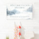 Blue and White Wedding Reception Banner designed with a winter scene of soft falling snow with blue woodland accents. The text includes: Welcome To Our Wedding, and The Bride & Groom's First Names. To personalise, simply insert your names into our easy template, replacing the sample. Be sure to view the entire Blue and White Winter Snow Wedding Collection. Enjoy!