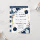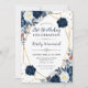 Elegant Boho Watercolor Blue and White Winter Flowers flowers and foliage design with gold geometric frame
