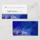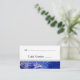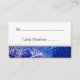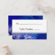 A custom placecard with elegant custom letters and a winter holiday art pattern of pine boughs and pinecones in blue and white on an icy background of blues and violet.