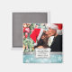 Personalised Wedding Photo Save the Date Magnets. Add your own photos and custom texts. Blue and White Winter Snowflakes with silver accents.