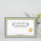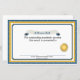 Decorative blue, yellow and white academic award certificate, with custom text. Personalise to suit your class room or school awards ceremony needs.