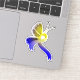 Blue and yellow butterfly awareness ribbon with customisable text. The blue and yellow ribbon stands for Designated Driver Awareness and Down Syndrome Awareness. October is Down Syndrome Awareness Month.