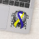 The blue and yellow ribbon with angel wings and a filigree pattern. The blue and yellow ribbon stands for Designated Driver Awareness and Down Syndrome Awareness. October is Down Syndrome Awareness Month.
