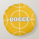 Blue and Yellow Bocci Ball round pillow cushion. Personalise with custom quote or name. Sporty gift for players and fans of the Italian Bocci game. Colours can be changed. Double sided. Cute cushion for players and fans. Trendy home decor for club house or home. Create a set.