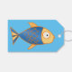 Set of 10 rectangular gift tags with an image of a whimsical blue and yellow fish with orange gills and an orange border on blue. The back is blue with customisable text. See matching confetti, custom-cut vinyl sticker and wrapping paper. See the entire Kids’ Corner Favour & Gift Tag collection in the SPECIAL TOUCHES | Party Favours section.
