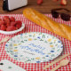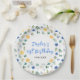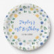 This beautiful and elegant plate features watercolor blue, yellow and white flowers with foliage. The text combines handwritten script and serif fonts for a stylish and modern look. This is perfect for a spring or summer rustic birthday party.