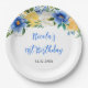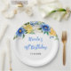 Blue and Yellow Floral Birthday Paper Plate