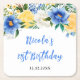 Blue and Yellow Floral Birthday Square Paper Coaster