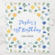Blue and Yellow Floral Birthday Wine Label