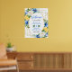 This beautiful and elegant wedding welcome sign features watercolor blue, yellow and white flowers with foliage. The text combines handwritten script and serif fonts for a stylish and modern look. This is perfect for a spring or summer rustic wedding.