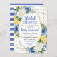 Blue and Yellow Flowers Gold Frame Bridal Shower Invitation