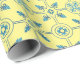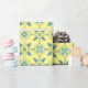 Pretty gift wrap features authentic blue Moroccan tile pattern on yellow background