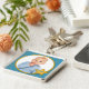This premium photo template keychain in fun blue with yellow polka dots has a gold star to put text in.