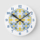 Blue and yellow pretty Portuguese tiles pattern Round Clock
