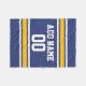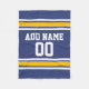 Blue and Yellow Sports Stripes Custom Name Number Fleece Blanket