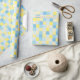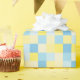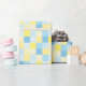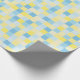 A wrapping paper designed with a square pattern in blue and yellow tones.