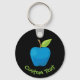 Blue apple with leaf icon. Custom background colour. Custom text on both sides.
