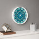 Blue Aqua Mandala Rosette Retro Hippie Clock