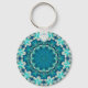 Blue Aqua Mandala Rosette Retro Hippie Key Ring