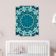 Blue Aqua Mandala Rosette Retro Hippie Poster