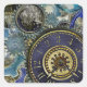 Blue aqua steampunk gears, cogs, clock faces print square sticker