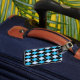Stylish luggage tag with a classic blue, black, and white argyle pattern, on the front. The back of the tag is done in solid black, with white custom text. Personalise the text to suit your needs. Matching travel products are available.