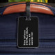 This was purchased as part of a 40th Birthday present for my nephew who is going to Vegas. It is made of high quality, very study and we decided only to put his name on the back of the tag, but you can add a full address if you so wish.