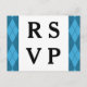 Blue Argyle Wedding Response Postcard