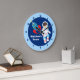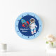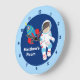 Cool rocket ship and astronaut outer space clock for a little boy's room. Customise this blue wall clock with your child's name or other text. Awesome images by www.prettygrafik.com