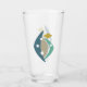 This fabulous mid century modern drinking glass features boomerangs, circles, and diamond shapes in a combination of the colours turquoise, blue, tan, gold, and black.