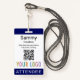 Personalise our professional attendee event badge with your logo, attendee name, and other custom text. It's pvc plastic and available with a lanyard, clip, or a retractable reel. Designed in navy blue and other colours with a modern minimalist design by MISOOK. All colours are customisable. You can optionally add content to the back side. Easily customise the attendee title (VIP guest, visitor, speaker, etc). No minimum order quantity and no setup fee.